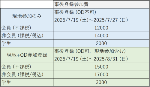 2025年7月19日(土)から開始される事後登録に再登録となり、事後参加費となります旨ご了承ください。